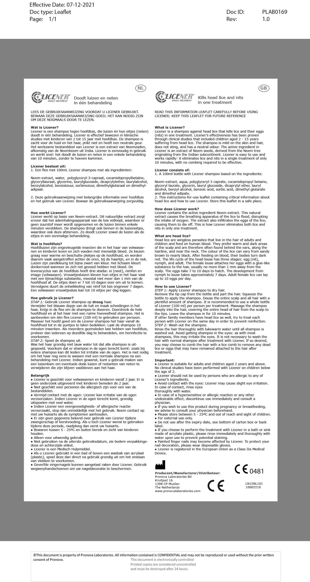 Vind onderstaand de bijsluiter van Licener Anti-Luis Shampoo. Lees de gebruiksaanwijzing altijd voor u Licener gaat gebruiken. Voor overige vragen kunt u altijd contact met ons opnemen.